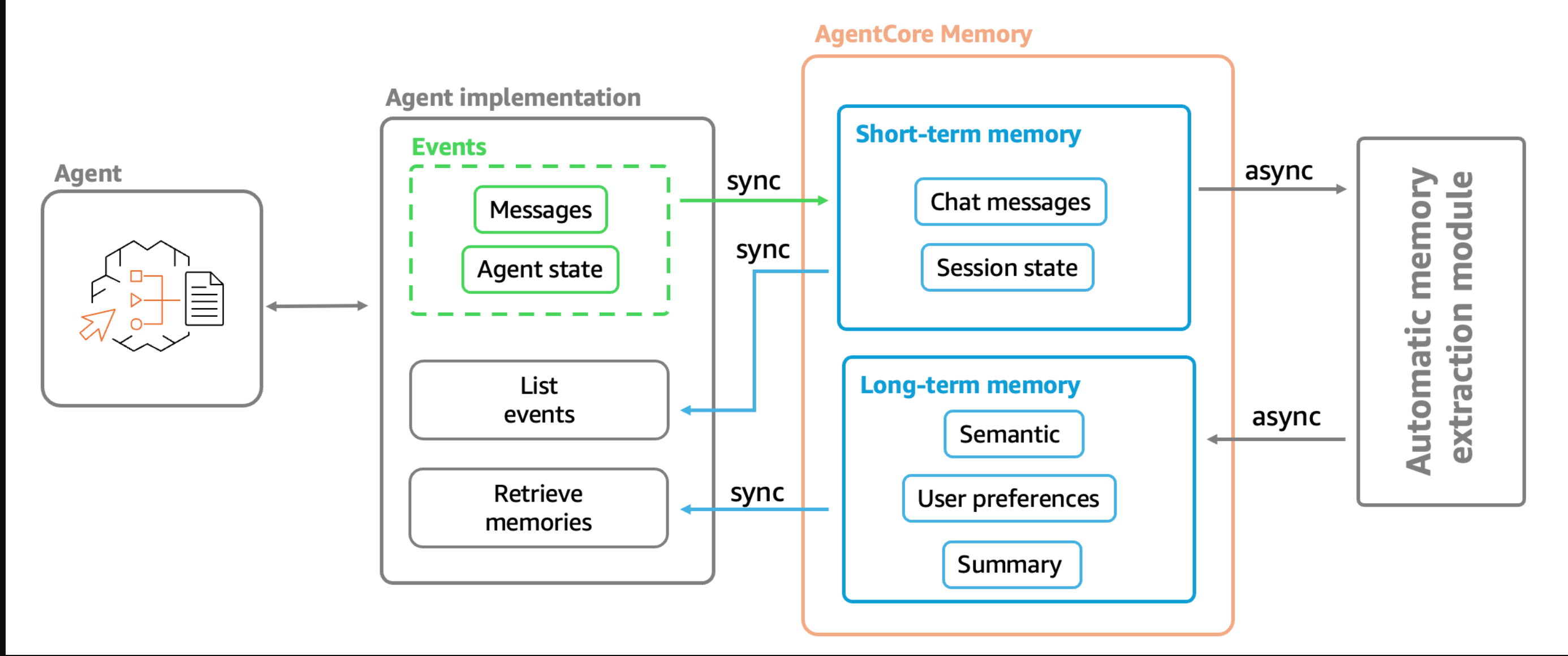 Now that we understand the key components, here’s what the overall AgentCore Memory architecture looks like: