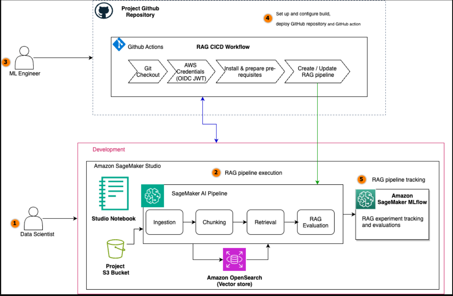 In this post, we walk through how to streamline your RAG development lifecycle from experimentation to automation, helping you operationalize your RAG solution for production deployments with Amazon SageMaker AI, helping your team experiment efficiently, collaborate effectively, and drive continuous improvement. By combining experimentation and automation with SageMaker AI, you can verify that the entire pipeline is versioned, tested, and promoted as a cohesive unit. This approach provides comprehensive guidance for traceability, reproducibility, and risk mitigation as the RAG system advances from development to production, supporting continuous improvement and reliable operation in real-world scenarios.