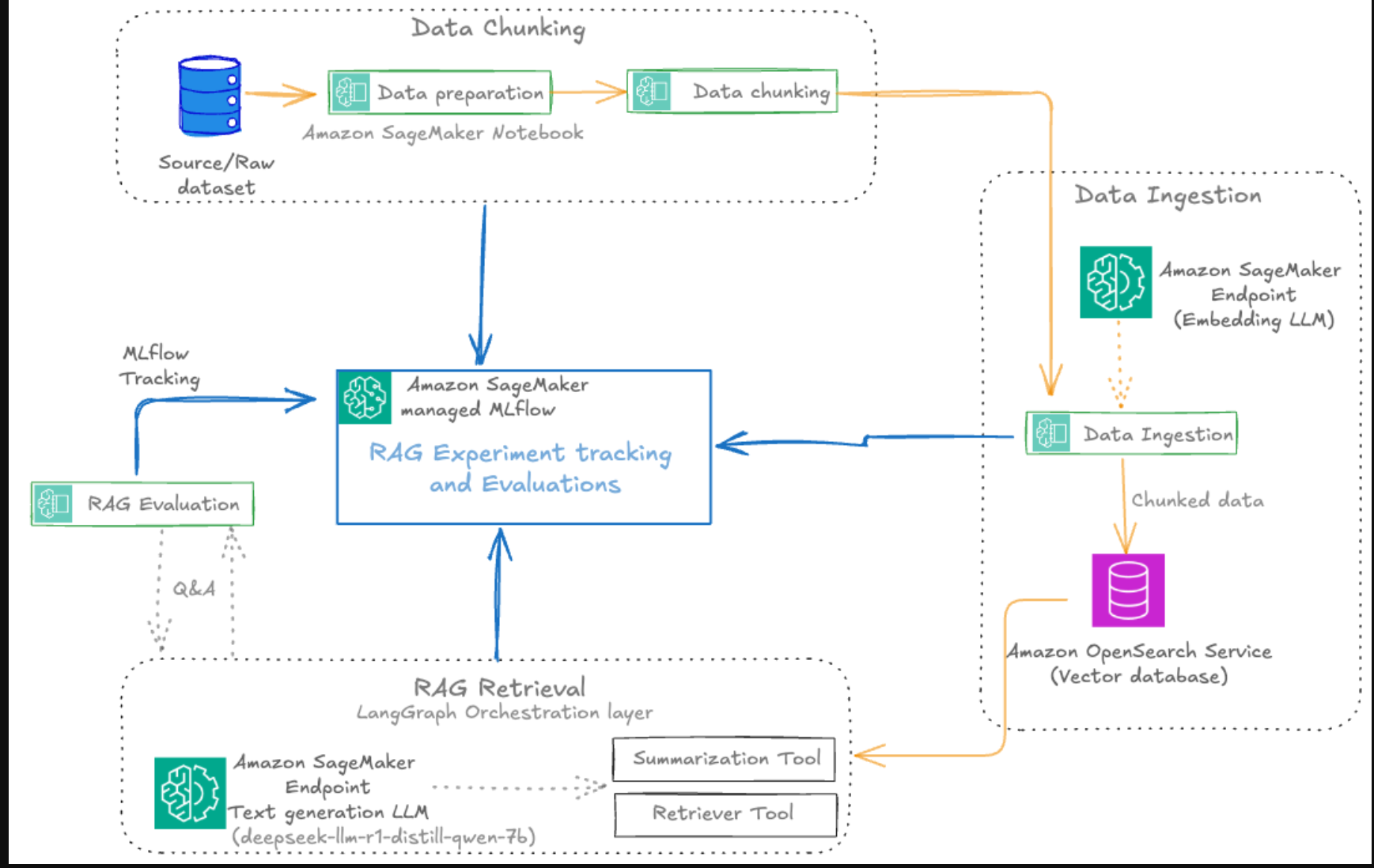 By streamlining both experimentation and operational workflows, teams can use SageMaker AI to rapidly prototype, deploy, and monitor RAG applications at scale. Its integration with SageMaker managed MLflow provides a unified platform for tracking experiments, logging configurations, and comparing results, supporting reproducibility and robust governance throughout the pipeline lifecycle. Automation also minimizes manual intervention, reduces errors, and streamlines the process of promoting the finalized RAG pipeline from the experimentation phase directly into production. With this approach, every stage from data ingestion to output generation operates efficiently and securely, while making it straightforward to transition validated solutions from development to production deployment.
