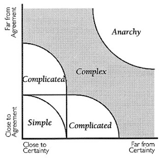 这让我回到戴夫斯诺登最近的一个声明,对我来说这似乎比他之前的Cynefin框架更有用。根据Conrad Taylor的报告,在2009年初的Gurteen知识咖啡馆的演讲中,“Dave提出了三种系统模型:有序,混乱和复杂。通过'系统',他指的是具有连贯性的网络,尽管这并不意味着明显的界限“代理人”被定义为在系统中行事的任何东西。代理人可以是个人或分组;一个想法也可以是一个代理人,例如神话结构在很大程度上决定了我们如何在社区内做出决定和我们生活的社会。“