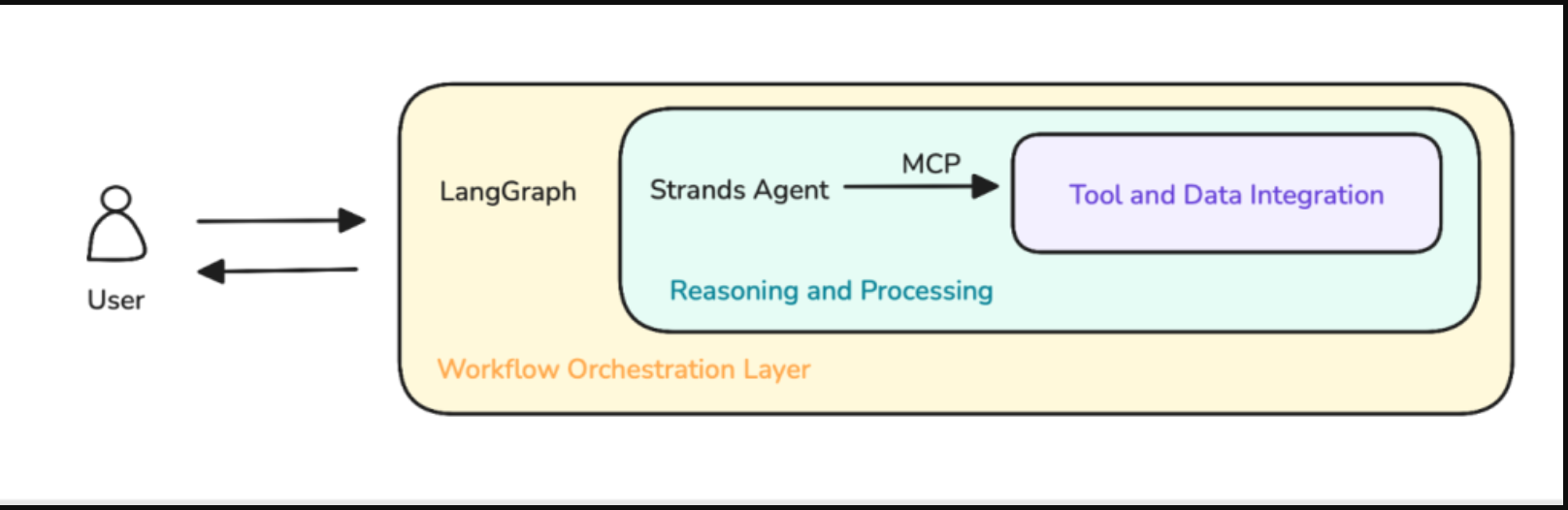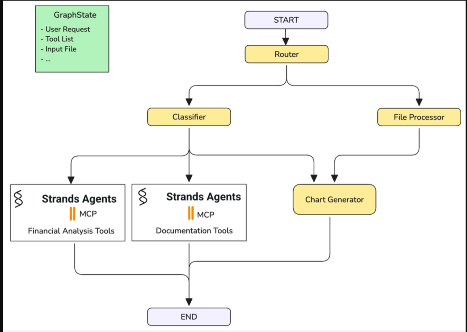 This post describes an approach of combining three powerful technologies to illustrate an architecture that you can adapt and build upon for your specific financial analysis needs: LangGraph for workflow orchestration, Strands Agents for structured reasoning, and Model Context Protocol (MCP) for tool integration.