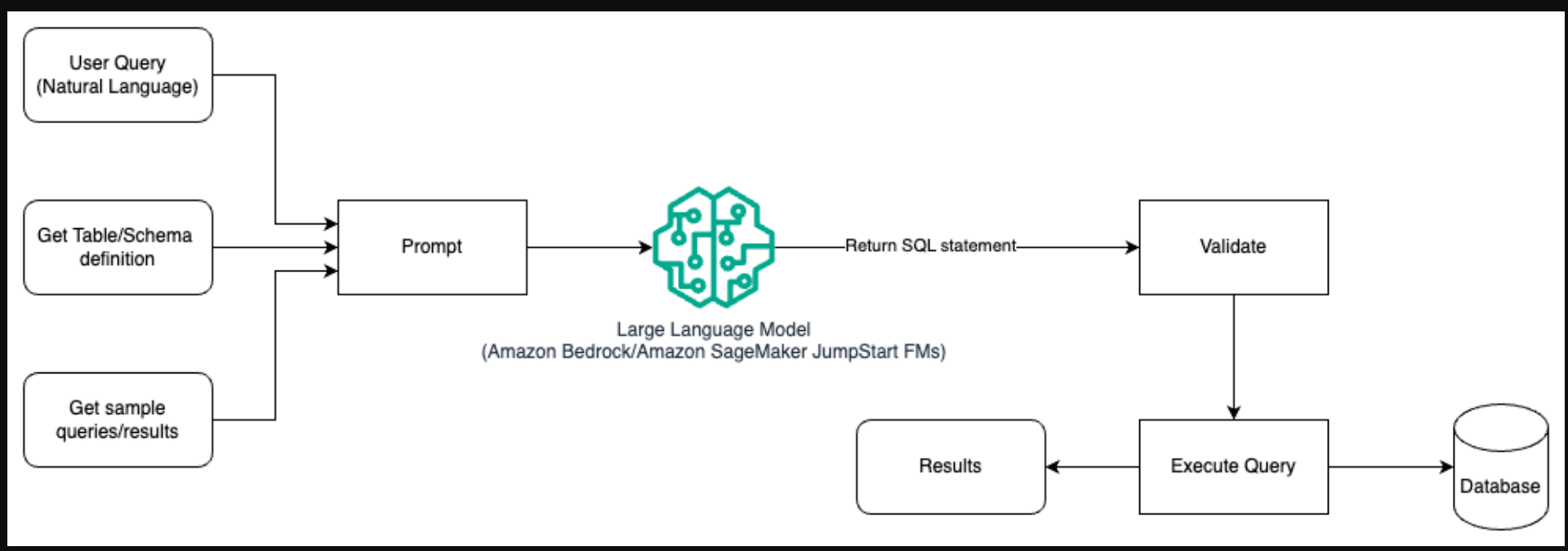 生成式人工智能在人工智能领域开辟了许多潜力。我们看到了许多用途,包括文本生成、代码生成、摘要、翻译、聊天机器人等。一个正在发展的领域是使用自然语言处理(NLP)来解锁通过直观的SQL查询访问数据的新机会。业务用户和数据分析师可以用通俗易懂的语言提出与数据和见解相关的问题,而不是处理复杂的技术代码。主要目标是从自然语言文本自动生成SQL查询。为此,文本输入被转换为结构化表示,并从该表示中创建可用于访问数据库的SQL查询。