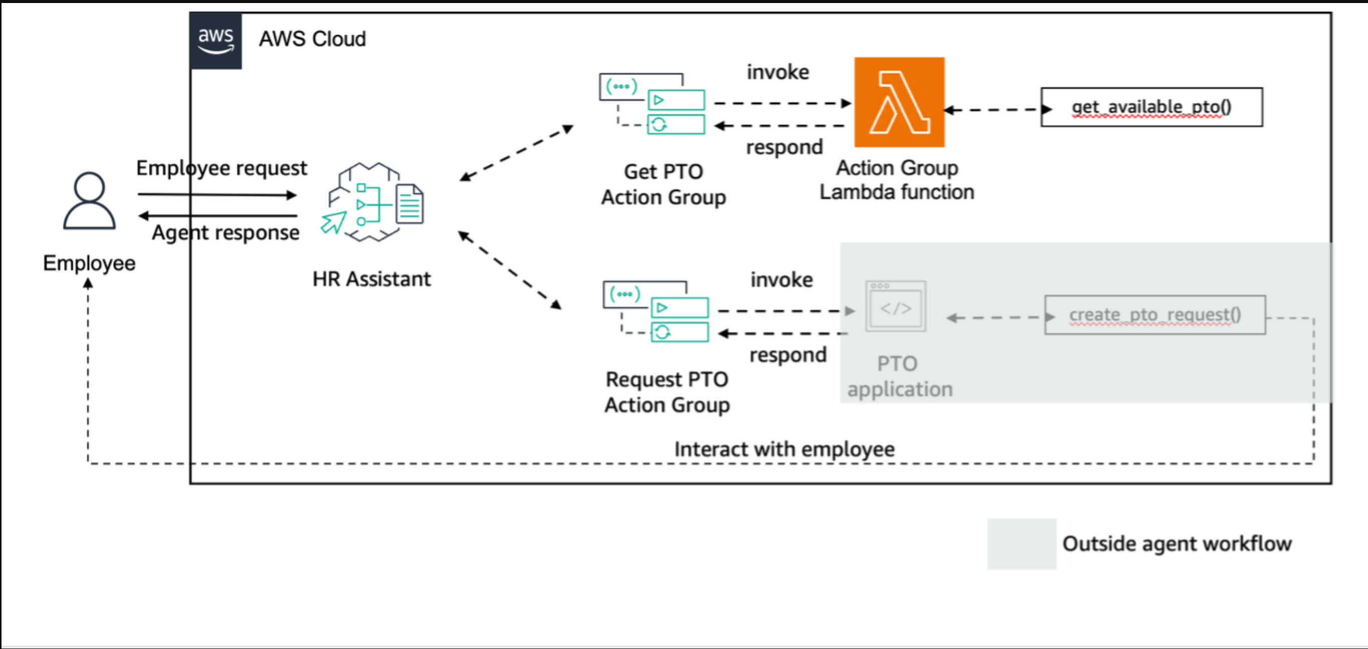 在这篇文章中,我们特别关注使用内置的Amazon Bedrock agent功能,特别是HITL模式,使最终用户能够批准操作并提供反馈,以提供安全有效的代理操作。我们使用人力资源(HR)代理示例来探索可用的模式,该示例可以帮助员工申请休假。您可以手动重新创建该示例,也可以通过遵循我们的GitHub存储库使用AWS云开发工具包(AWS CDK)。我们从应用程序开发人员的角度向您展示这些方法的外观,同时为您提供概念背后的总体思路。对于该帖子,我们在Amazon Bedrock上应用用户确认和控制权返回,以实现人工确认。