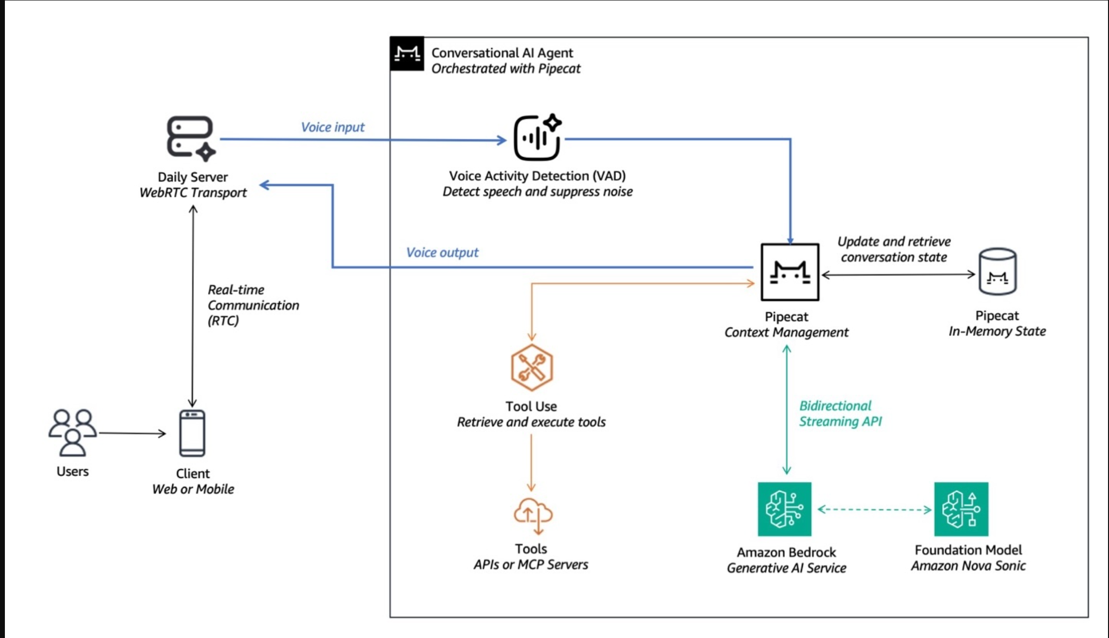 通过Pipecat等开源框架和Amazon Bedrock上强大的基础模型的结合,构建智能AI语音代理比以往任何时候都更容易实现。