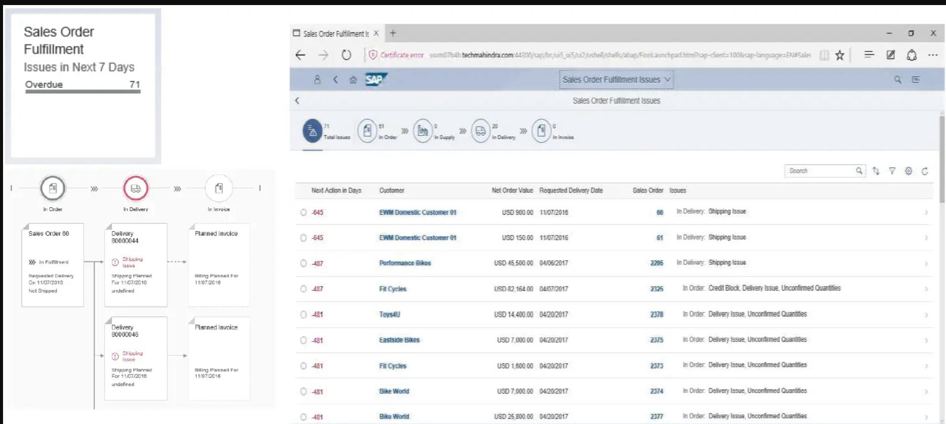 - 显示此客户的履行问题列表或导航到问题详细信息