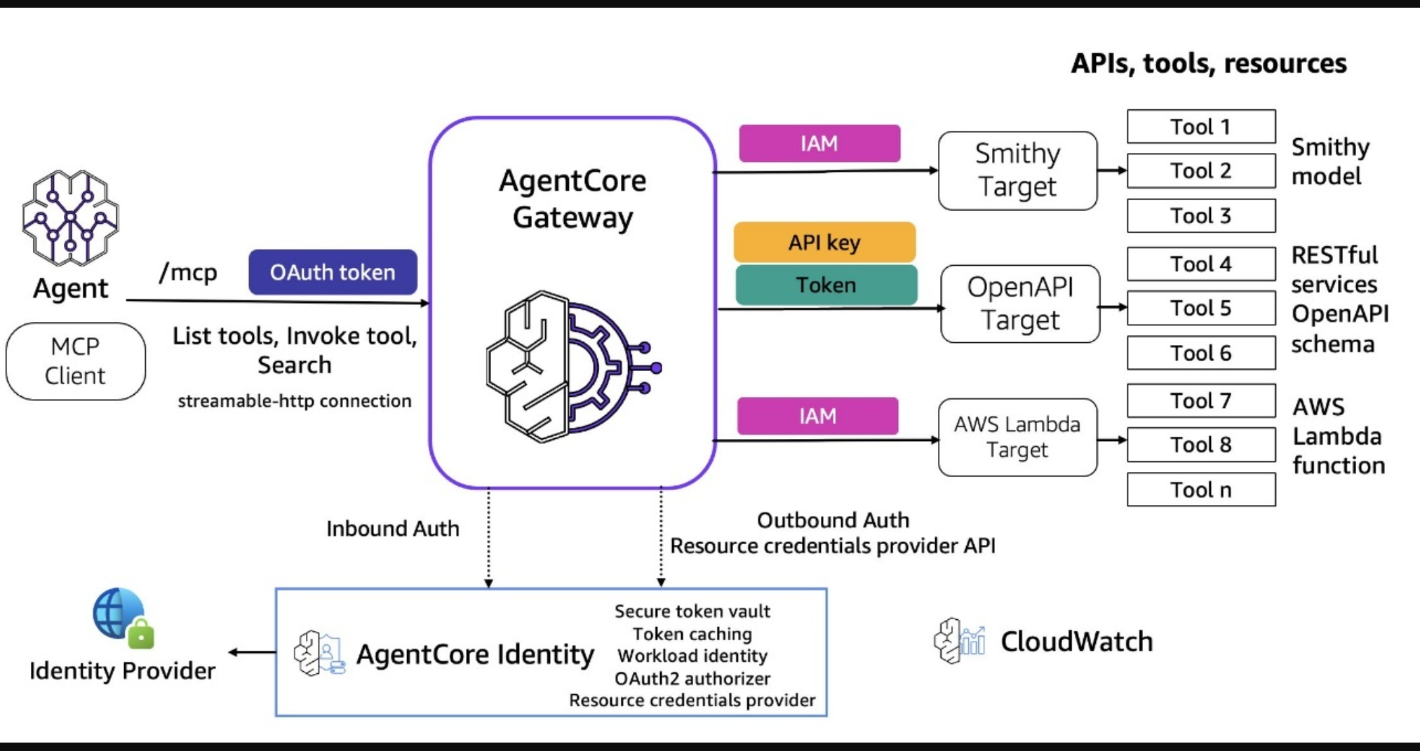 We’re excited to announce Amazon Bedrock AgentCore Gateway, a fully managed service that revolutionizes how enterprises connect AI agents with tools and services. AgentCore Gateway serves as a centralized tool server, providing a unified interface where agents can discover, access, and invoke tools.
