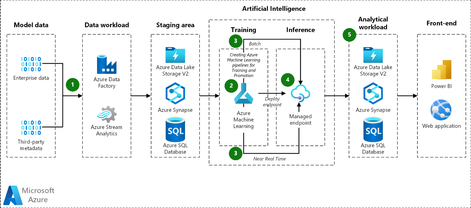 - 预测:批量评分管道将预测保存到Synapse SQL。