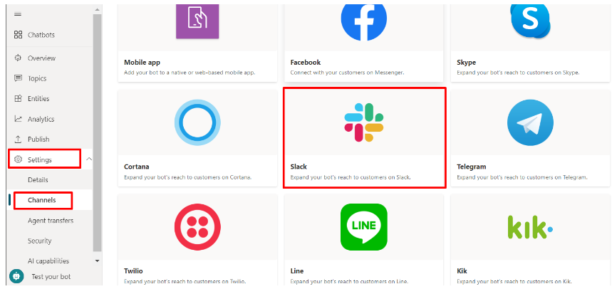 - Azure Bot Service Channels to connect to any Azure Bot Service-supported channel.